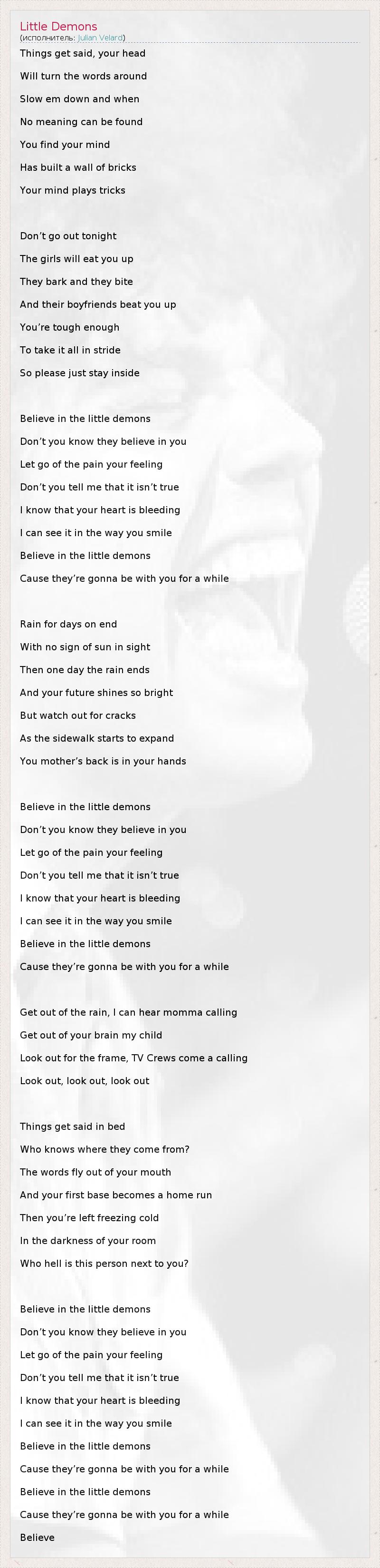 А как ты думаешь, о чем песня "Little Demons" ?