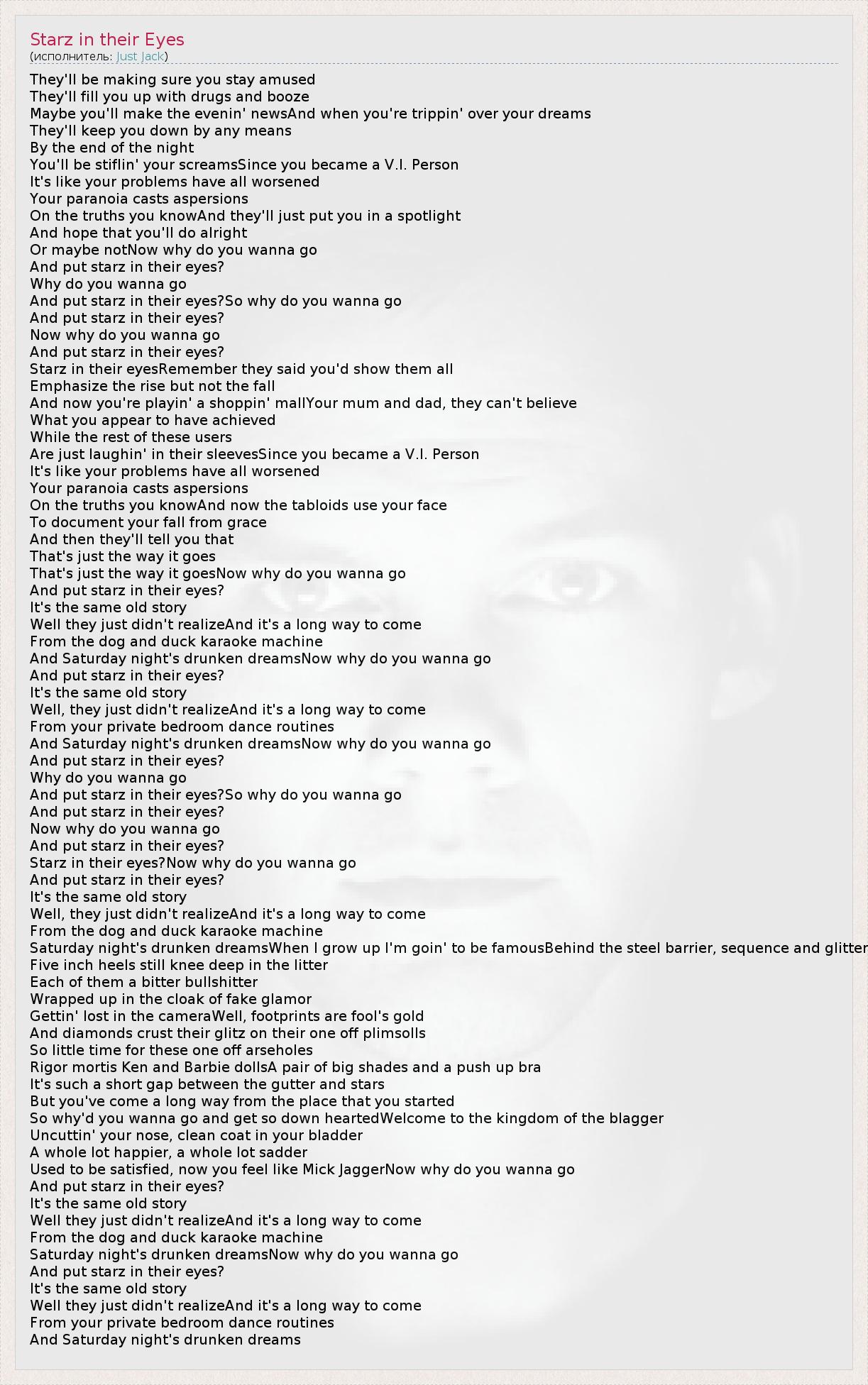 А как ты думаешь, о чем песня "Starz in their Eyes" ?