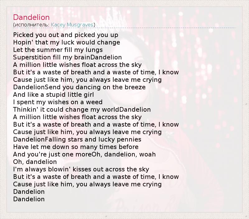А как ты думаешь, о чем песня "Dandelion" ?