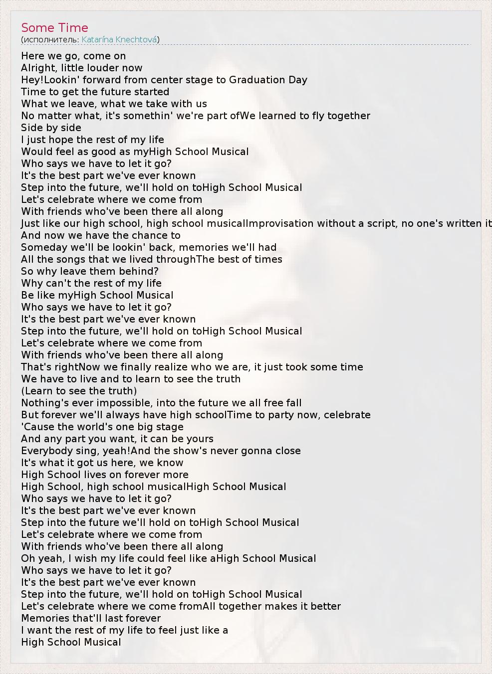 Oh yeah, I wish my life could feel like aHigh School Musical