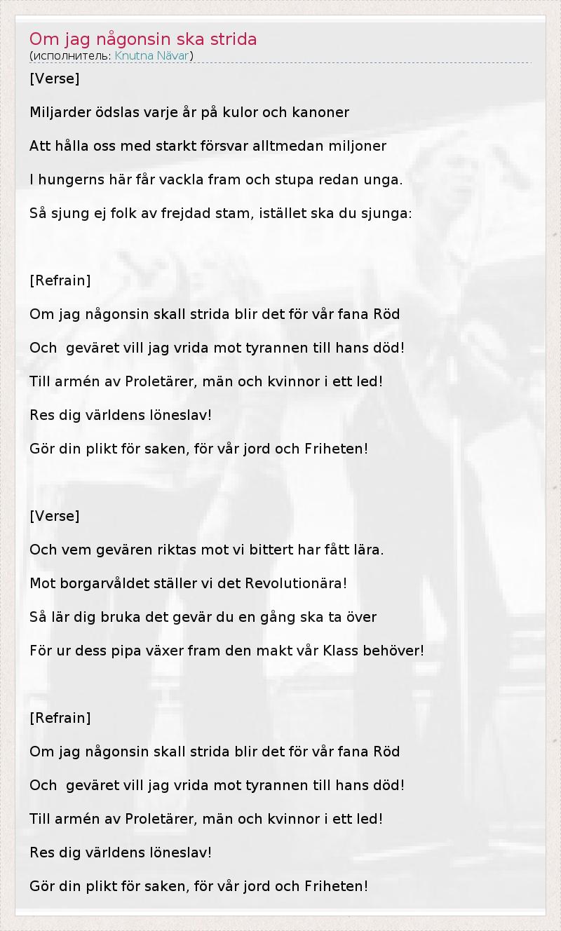 А как ты думаешь, о чем песня "Om jag någonsin ska strida" ?