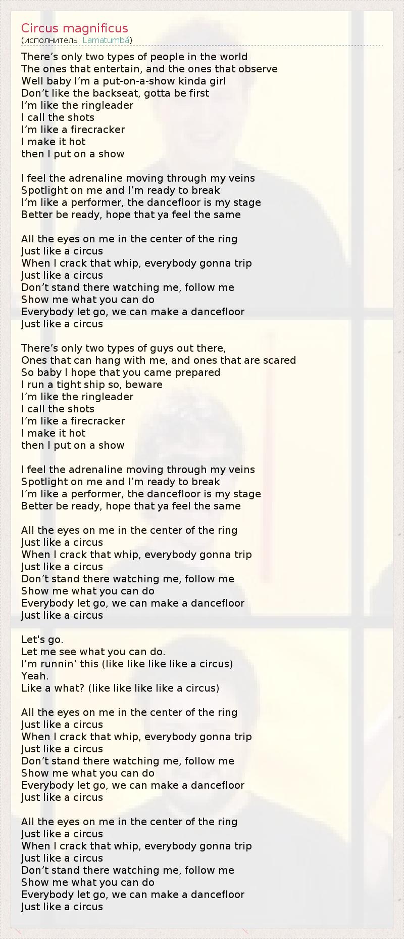 А как ты думаешь, о чем песня "Circus magnificus" ?