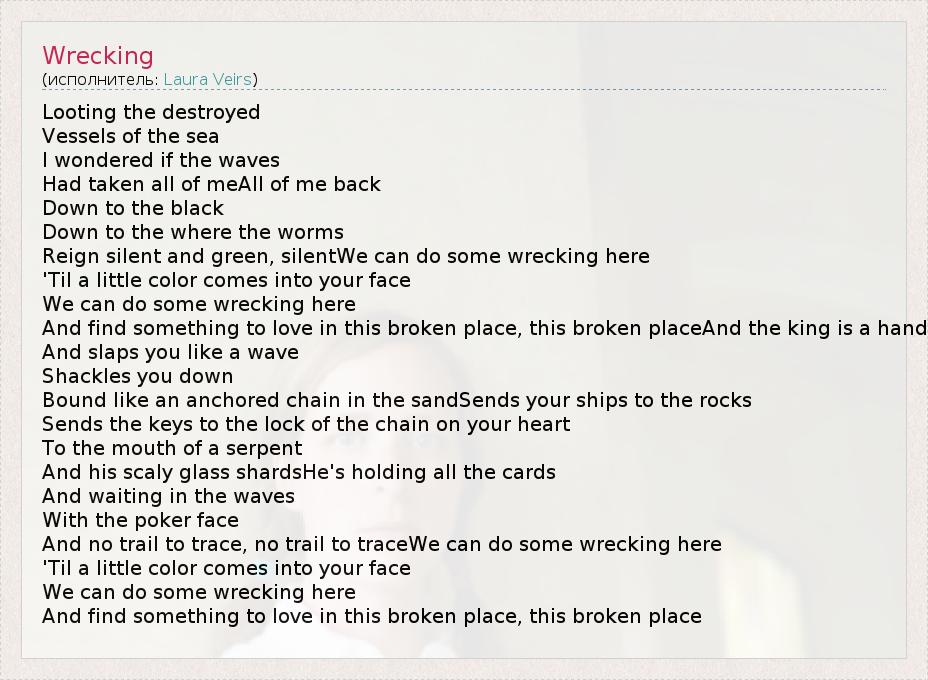 And no trail to trace, no trail to traceWe can do some wrecking here