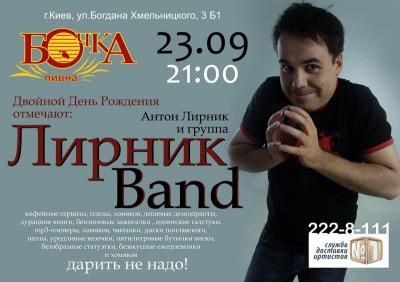Это интересно: LirnikBand - это музыкальный проект резидента Comedy Club UA Антона Лирника. В составе восемь человек - это сам Антон в роли солиста, Алекс Аморалес (Алексей Морозов), Антон, Евгений, Ваня, Вова, Валерий и Вадик. Стиль определить трудно. Сами музыканты говорят: «Это веселее, чем "Ленинград", дешевле, чем Сердючка, танцевальнее, чем "Ляпис Трубецкой" и круче, чем Вы можете себе представить!»Недавно состав группы полностью (на 6 человек из 8-ми) обновился. Группа продолжает свое существование.
