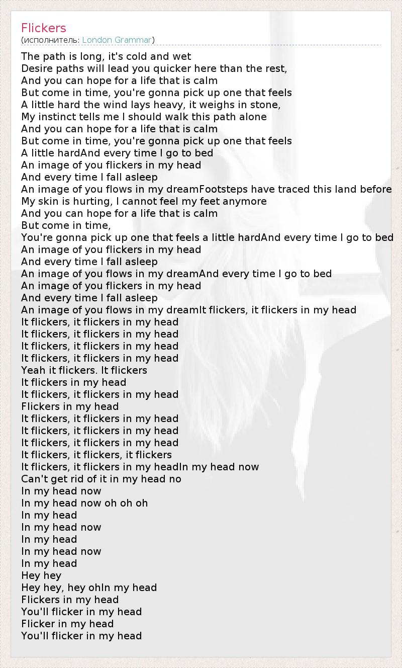 It flickers, it flickers in my headIn my head now