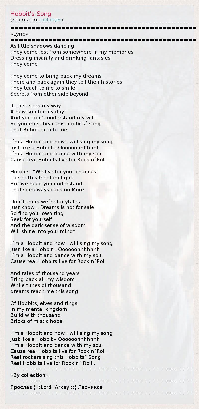 А как ты думаешь, о чем песня "Hobbit's Song" ?