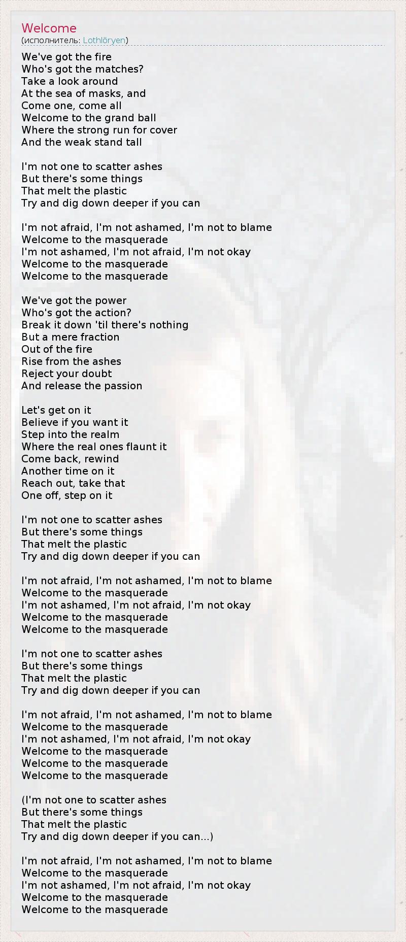 I'm not afraid, I'm not ashamed, I'm not to blame