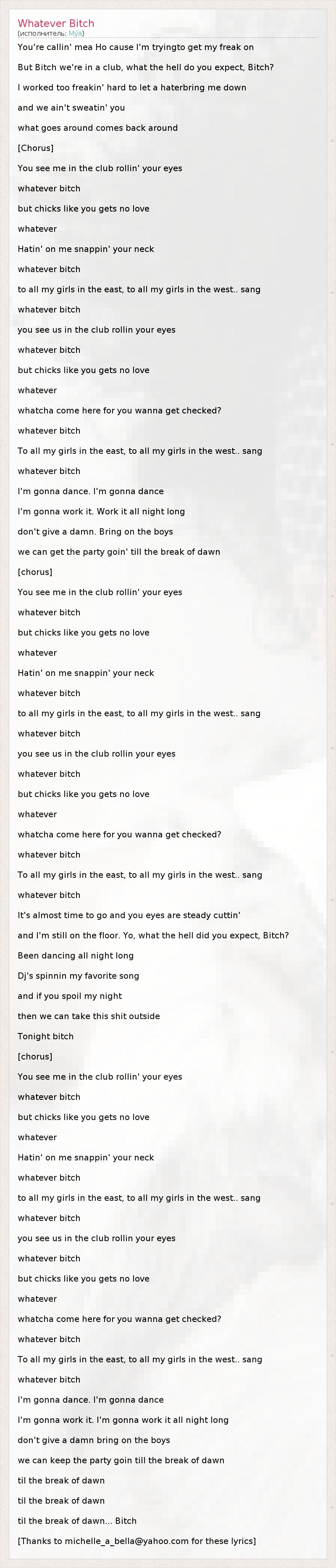А как ты думаешь, о чем песня "Whatever Bitch" ?