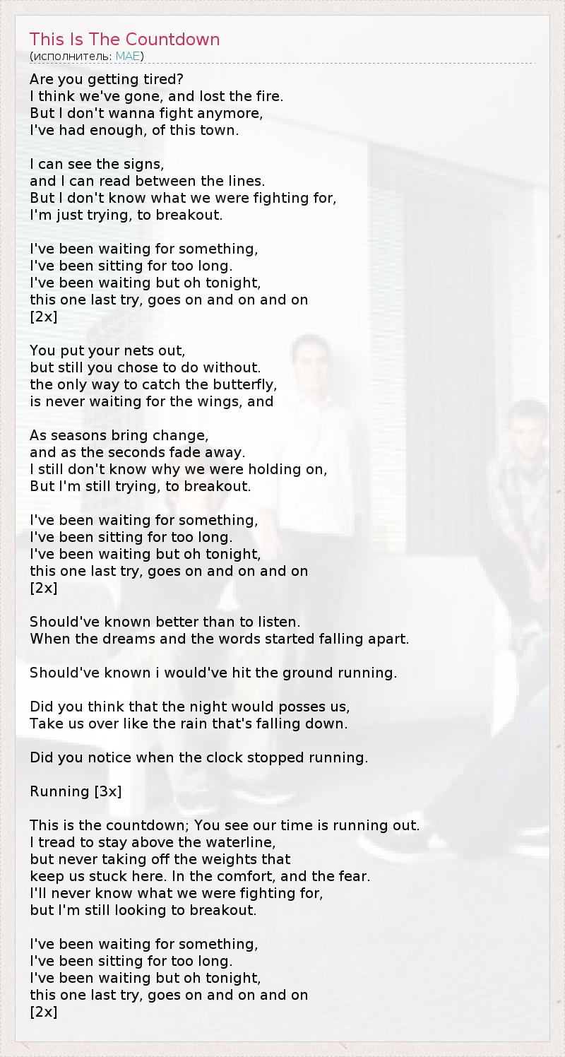 ГлавнаяИсполнителиMAEThis Is The Countdown