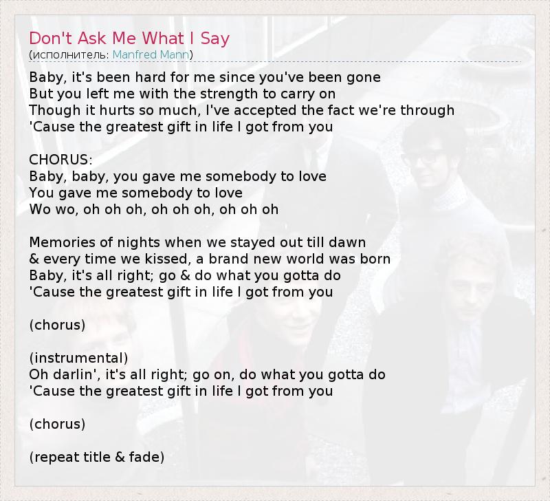 ГлавнаяИсполнителиManfred MannDon't Ask Me What I Say