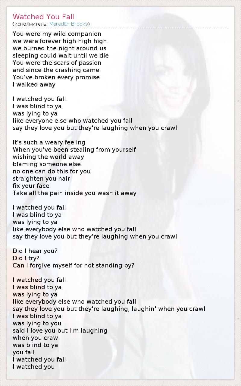 А как ты думаешь, о чем песня "Watched You Fall" ?