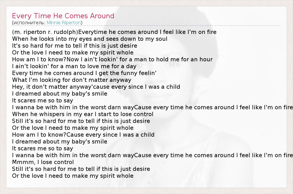 А как ты думаешь, о чем песня "Every Time He Comes Around" ?