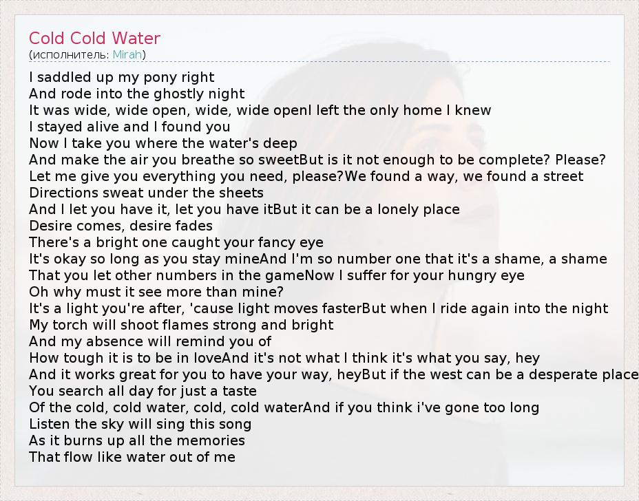 А как ты думаешь, о чем песня "Cold Cold Water" ?
