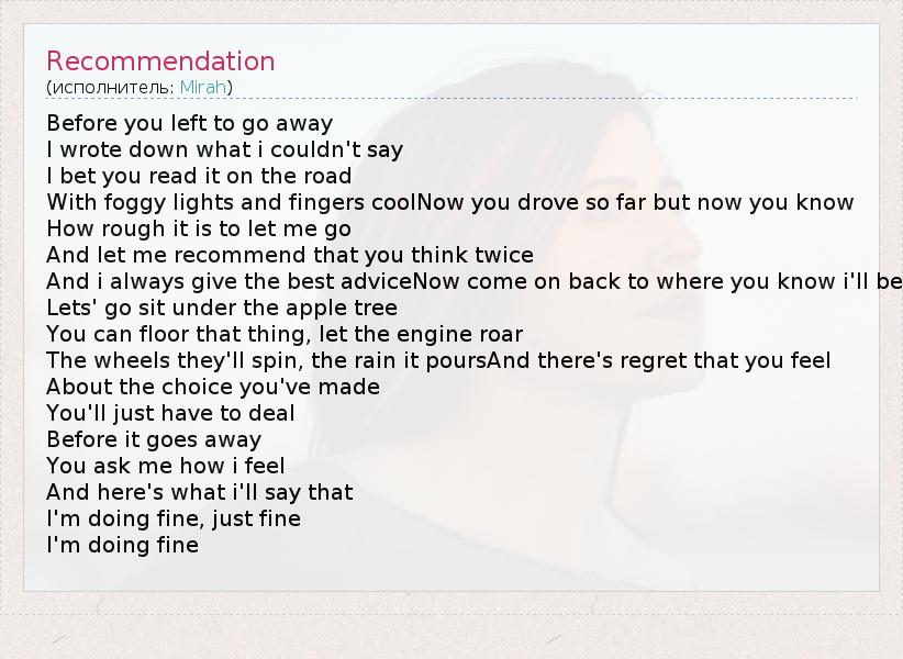 А как ты думаешь, о чем песня "Recommendation" ?