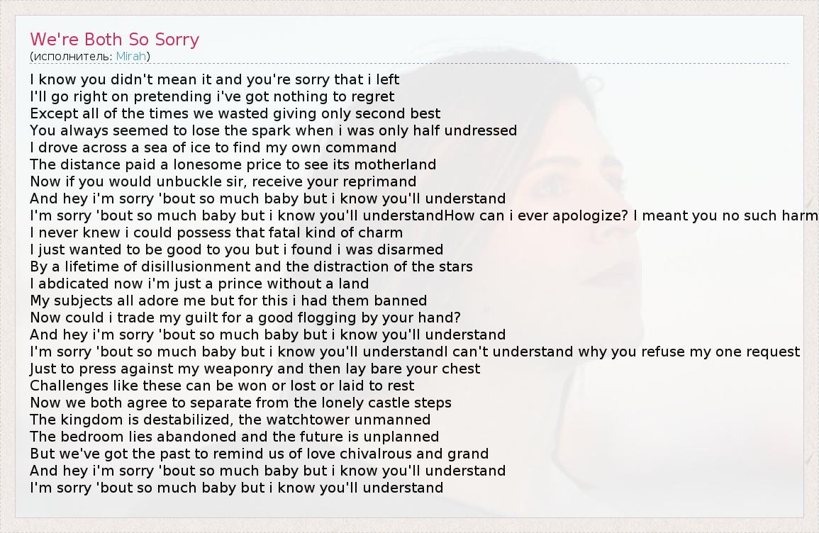 А как ты думаешь, о чем песня "We're Both So Sorry" ?