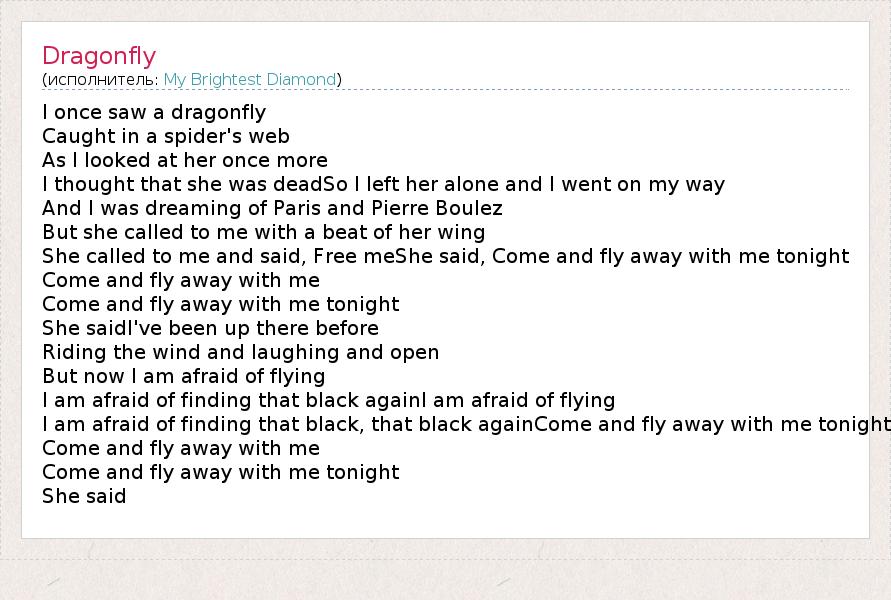 А как ты думаешь, о чем песня "Dragonfly" ?