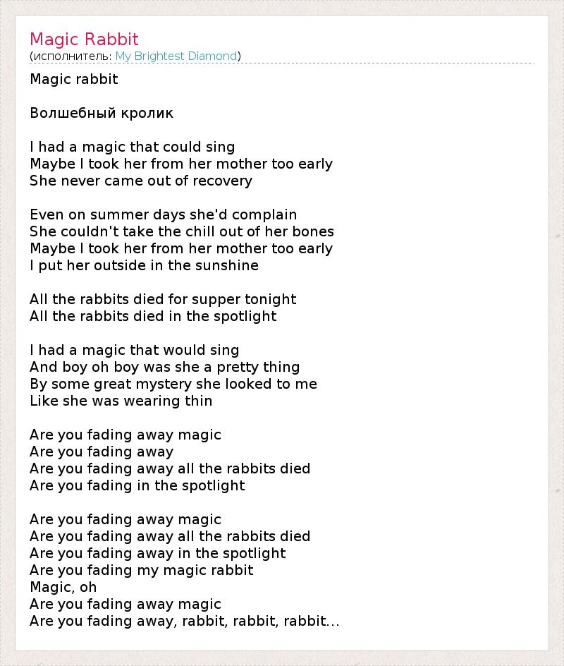 А как ты думаешь, о чем песня "Magic Rabbit" ?