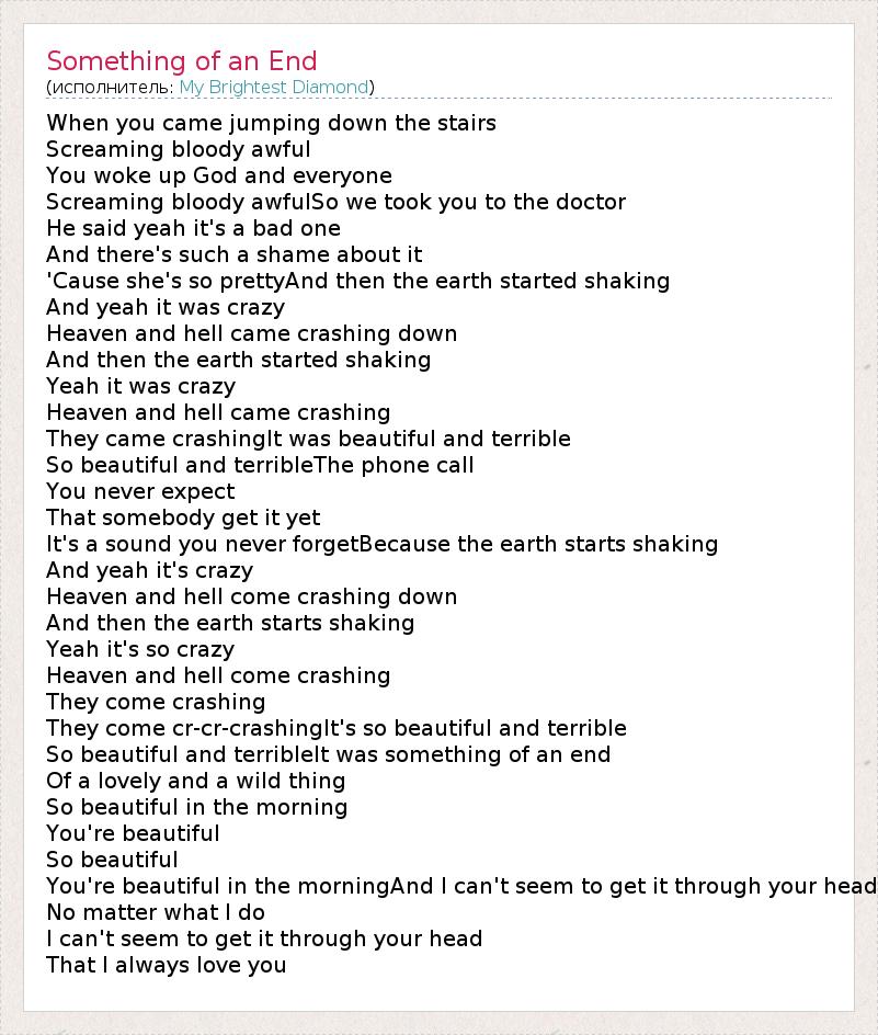 А как ты думаешь, о чем песня "Something of an End" ?