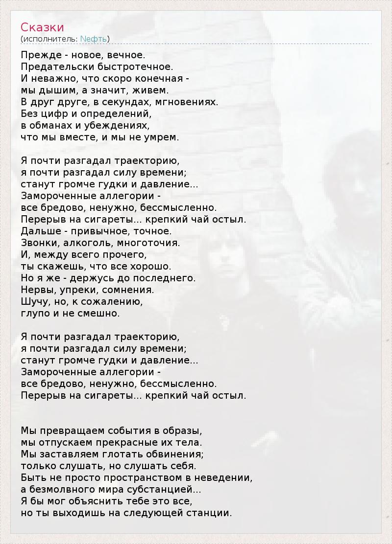 Это интересно:Nефть - это мелодичная музыка, проникновенные тексты и безумная энергетика. Музыка, в которой многие найдут отражение своих чувств и эмоций."Если в мирской жизни идет ежедневная силовая борьба за нефть, то с уверенностью можно заявить, что в музыкальном пространстве отныне есть те, кто способен щедро одаривать своих слушателей нескончаемым потоком «музыкальных баррелей»" (с)... продолжение