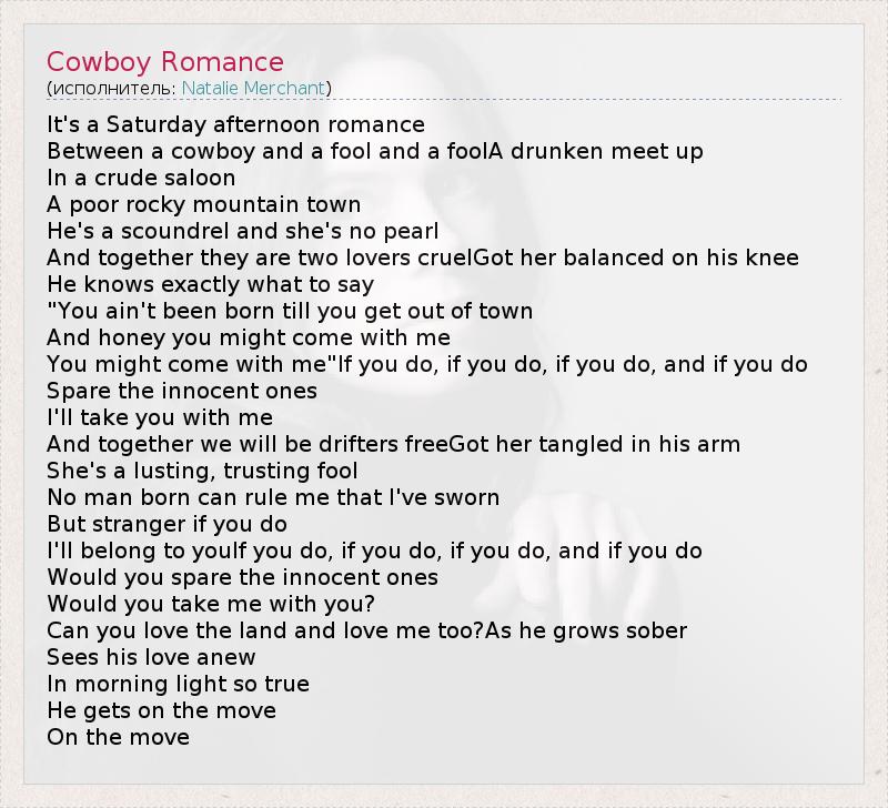 А как ты думаешь, о чем песня "Cowboy Romance" ?