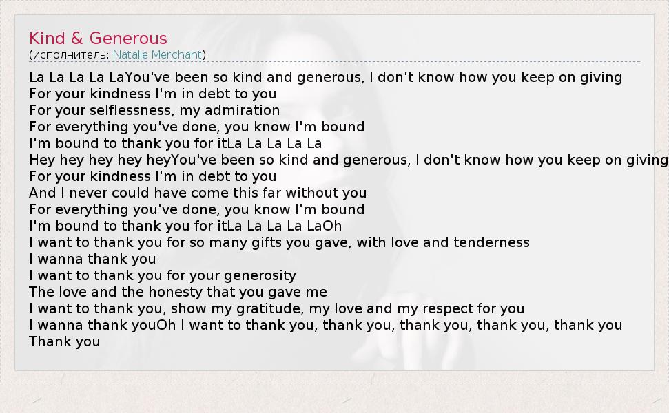 А как ты думаешь, о чем песня "Kind & Generous" ?