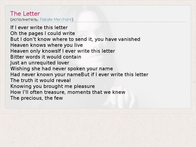 А как ты думаешь, о чем песня "The Letter" ?