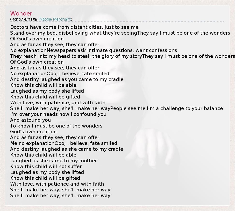 А как ты думаешь, о чем песня "Wonder" ?