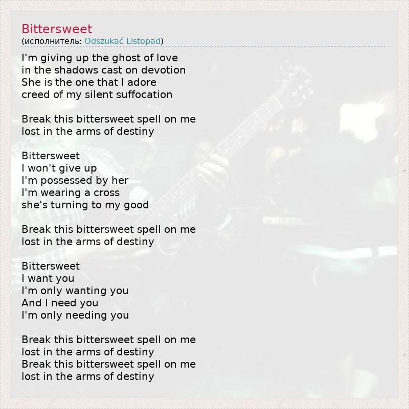 А как ты думаешь, о чем песня "Bittersweet" ?