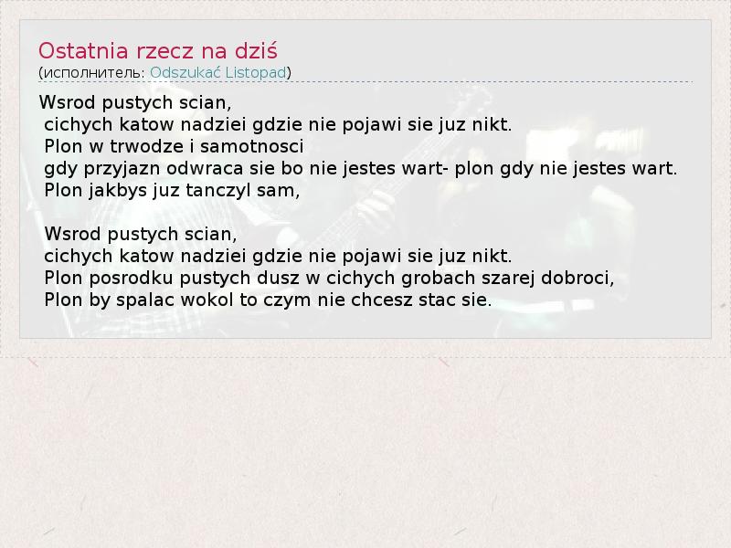 А как ты думаешь, о чем песня "Ostatnia rzecz na dziś" ?