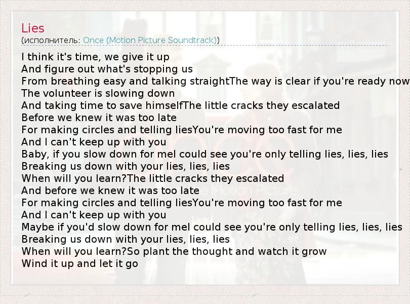Maybe if you'd slow down for meI could see you're only telling lies, lies, lies