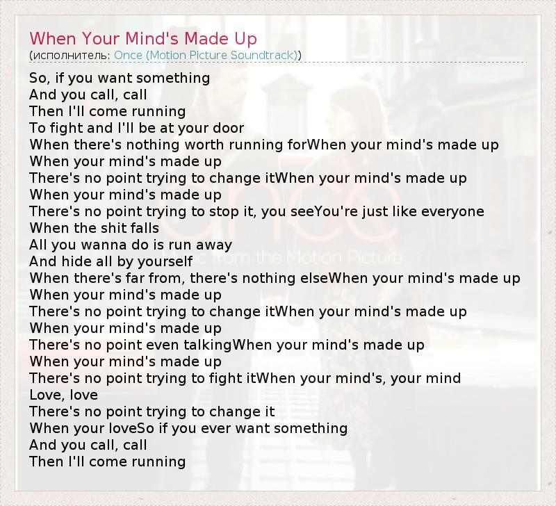 А как ты думаешь, о чем песня "When Your Mind's Made Up" ?