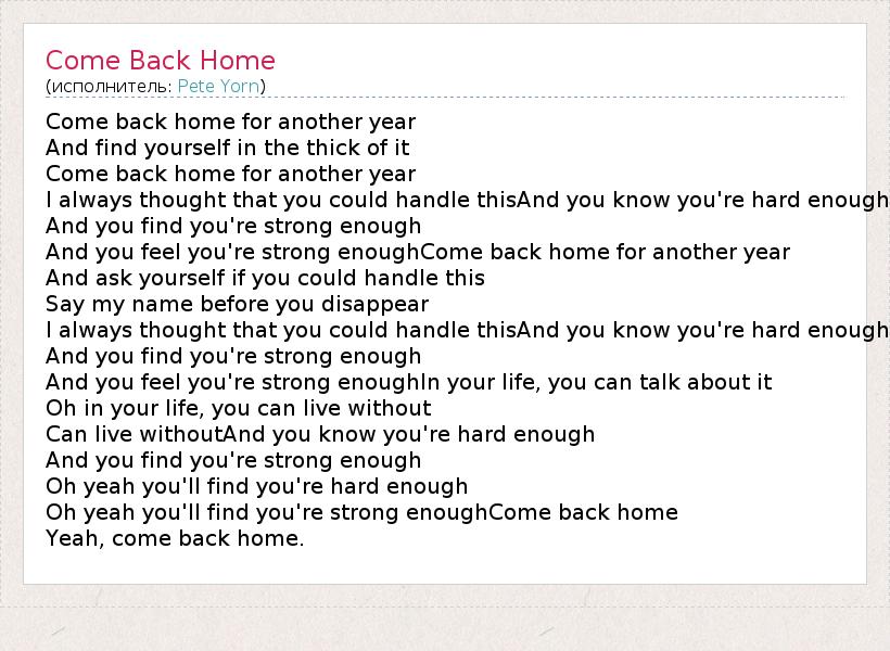А как ты думаешь, о чем песня "Come Back Home" ?