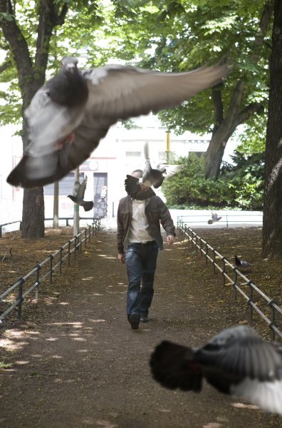 Und der Tag beginnt mit der Entdeckung einer Schönheit Hinter den Augen - Purpurwolken aufgehen sehn Und die Wolken zieh'n vorbei mit dem Morgenlicht Über den Hügeln und über den Dächern Denn er trennt sich da wo die Lichter in der Ferne sind Hinter den Augen und hinter den Lidern Schläfer grüß mir die Sonne, grüß mir das Morgenlicht Grüß mir die Sterne vom anderen Ende der Welt Schläfer grüß mir die Straßen, grüß mir Industriegebiete Grüß mir die Wolken, die Wolken die aus Purpur sind. Und der Einwohner verläßt das Haus und geht in den Tag Betritt die Straßen und reiht sich ein ein in den Nahverkehr Und auf den Straßen führt der Nahverkehr die Gesellschaft zusammen. Autobahnen und Schienenwege helfen ihm dabei. Schläfer grüß mir die Sonne, grüß mir das Morgenlicht Grüß mir die Sterne vom anderen Ende der Welt Schläfer grüß mir die Straßen, grüß mir Industriegebiete Grüß mir die Wolken, die Wolken die aus Purpur sind. Und überall in der Gesellschaft regt sich das Leben Verwaltung und Betriebe nehmen die Arbeit auf Und in der Arbeitswelt arbeiten Arbeitsgruppen Hand in Hand Sie kümmern sich um Dinge und organisieren Angelegenheiten für uns Menschen. Schläfer grüß mir die Sonne, grüß mir die Zufahrtsstraßen Grüß mir den Nahverkehr vom anderen Ende der Welt -- Autobahn und Schienenwege helfen ihm dabei -- Schläfer grüß mir die Plätze, grüß mir das Morgenlicht Grüß mir die Wolken, die Wolken die aus Purpur sind. Schläfer grüß mir die Sonne, grüß mir die Zufahrtsstraßen Grüß mir den Nahverkehr vom anderen Ende der Welt -- Autobahn und Schienenwege helfen ihm dabei -- Schläfer grüß mir die Plätze, grüß mir das Morgenlicht Grüß mir die Wolken, die Wolken die aus Purpur sind. Autobahn und Schienenwege helfen ihm dabei