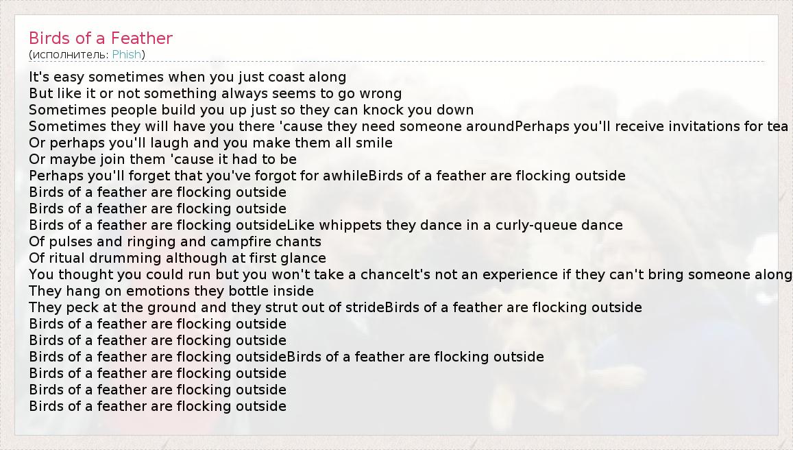 А как ты думаешь, о чем песня "Birds of a Feather" ?