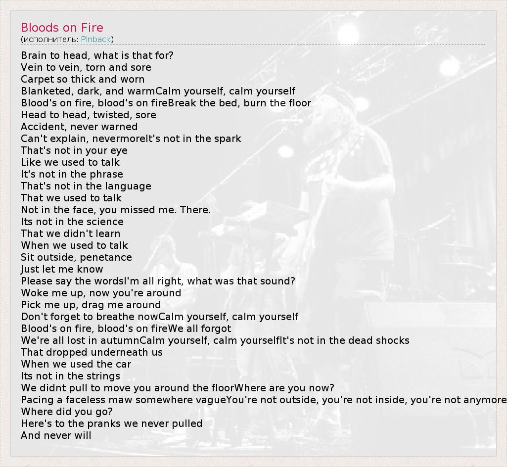 Blood's on fire, blood's on fireWe all forgot