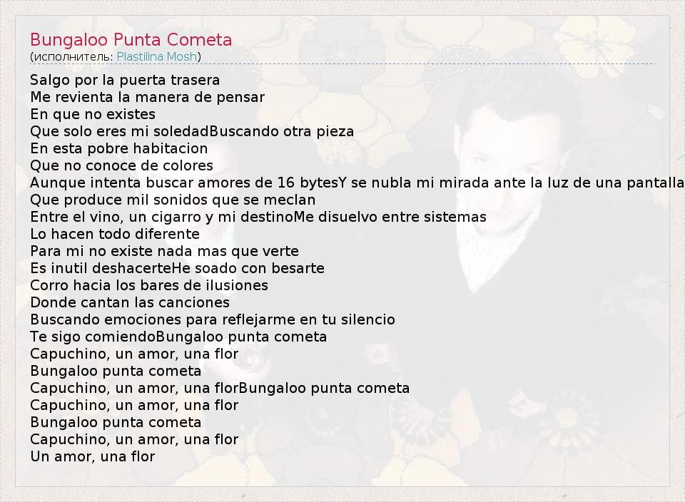 А как ты думаешь, о чем песня "Bungaloo Punta Cometa" ?