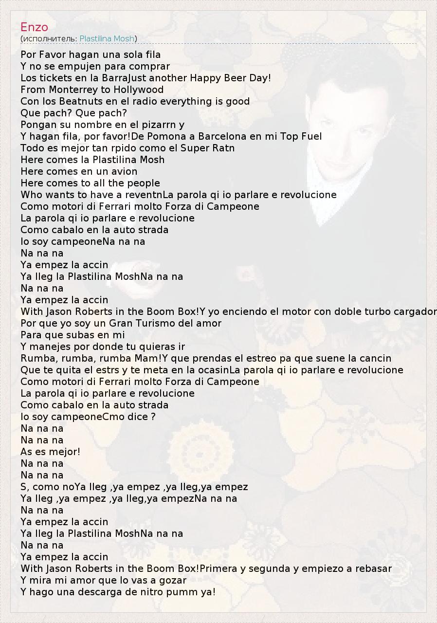 Это интересно:The band was formed in 1996 by Jonás Gonzalez and Alejandro Rosso. They met in Monterrey while playing Super Nintendo at a Wal-Mart.Their previous musical experiences were very opposite: González came from a thrash-metal band called Koervoz de Malta, and Rosso from an avant-garde group called Acarnienses. Jonas liked Sepultura, Soda Stereo, and Mano Negra; whereas Rosso liked Antonio Carlos Jobim, John Coltrane and a varied assortment of classical music.Back in early 1997, Plastilina traveled to Mexico City, where they recorded the video and the single of Niño Bomba, released under the independent label Tómbola! Recordings, which sold 5000 copies. Then, they started to get attention... продолжение