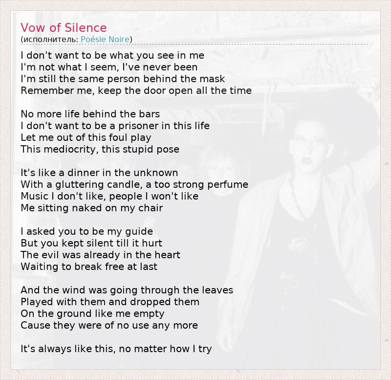 А как ты думаешь, о чем песня "Vow of Silence" ?