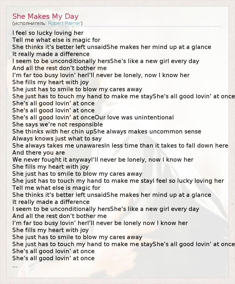 А как ты думаешь, о чем песня "She Makes My Day" ?