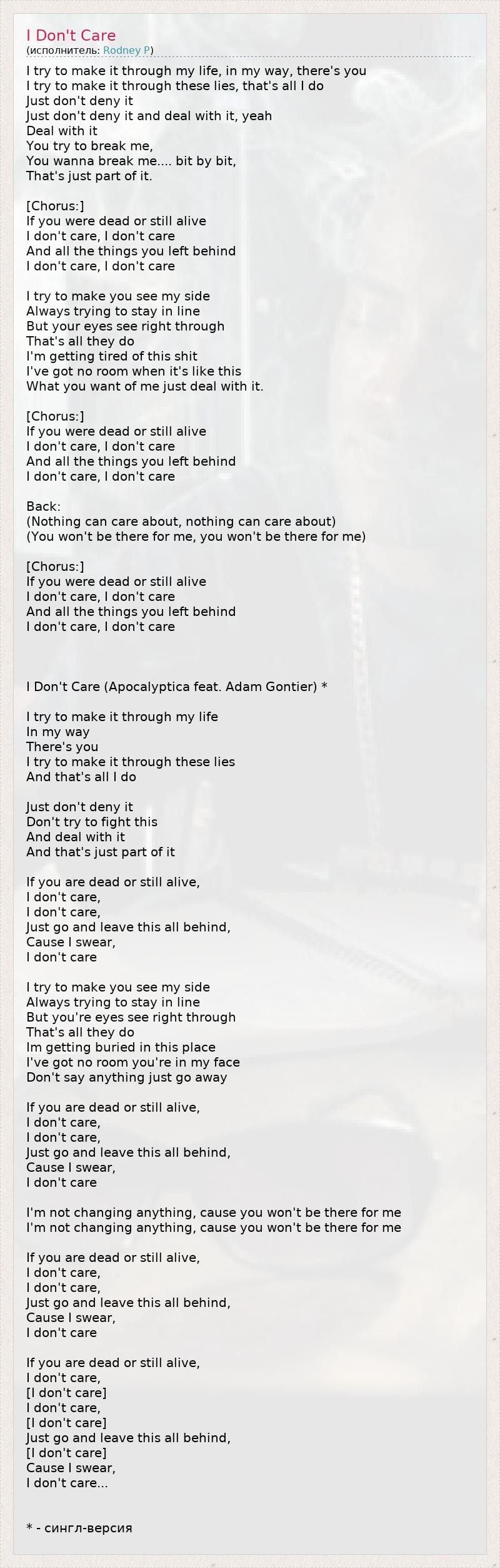 А как ты думаешь, о чем песня "I Don't Care" ?