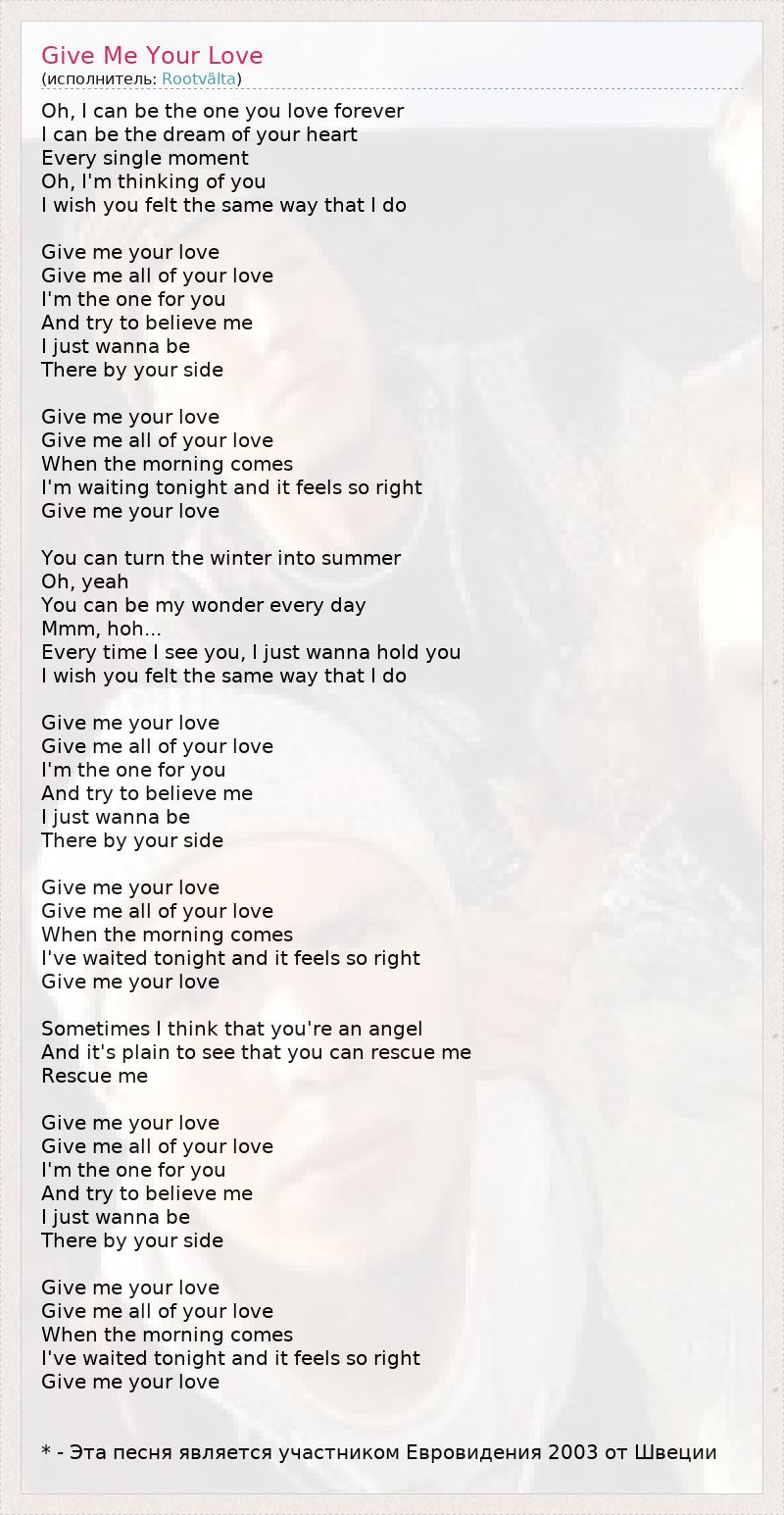 А как ты думаешь, о чем песня "Give Me Your Love" ?