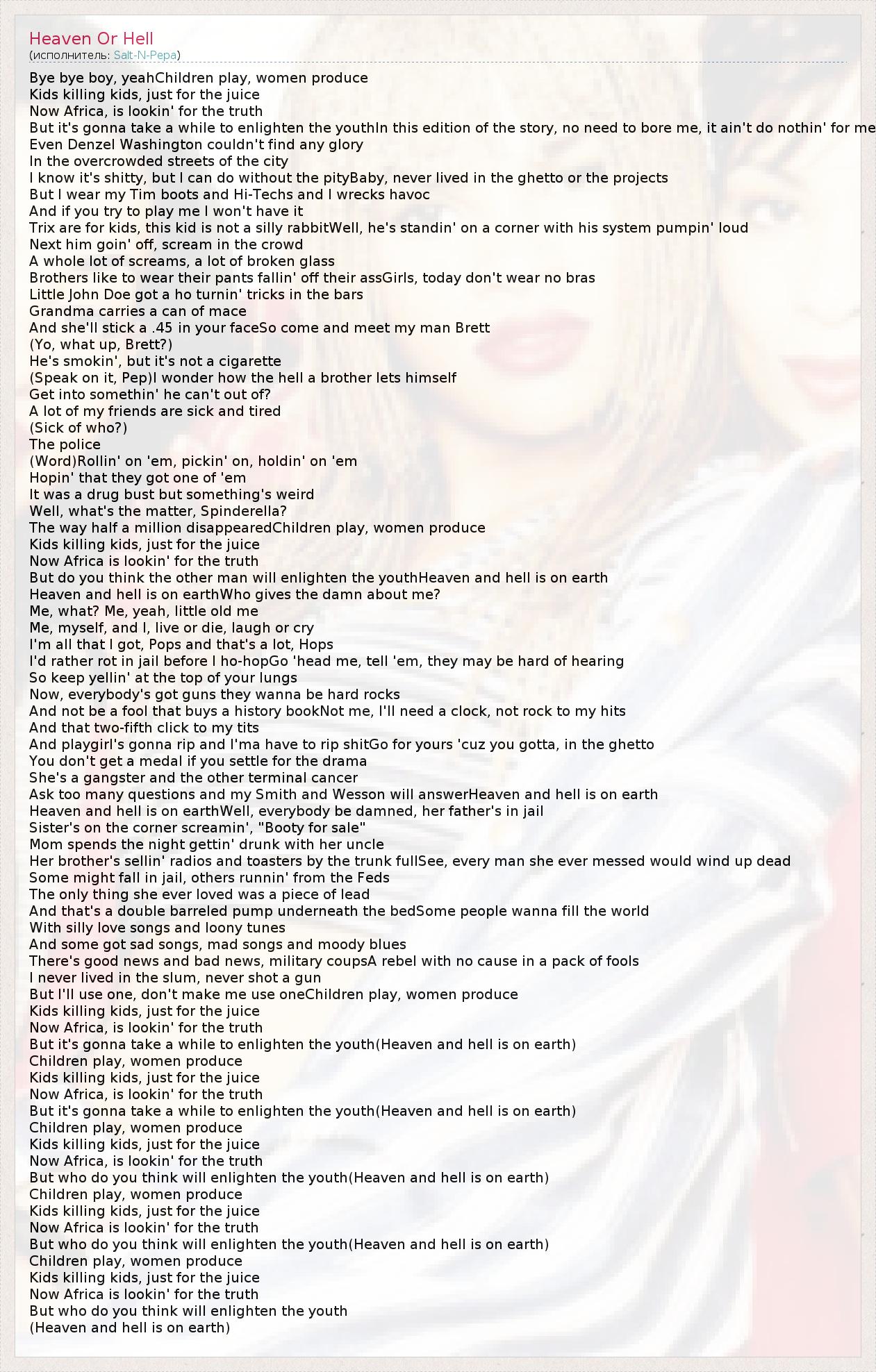 А как ты думаешь, о чем песня "Heaven Or Hell" ?