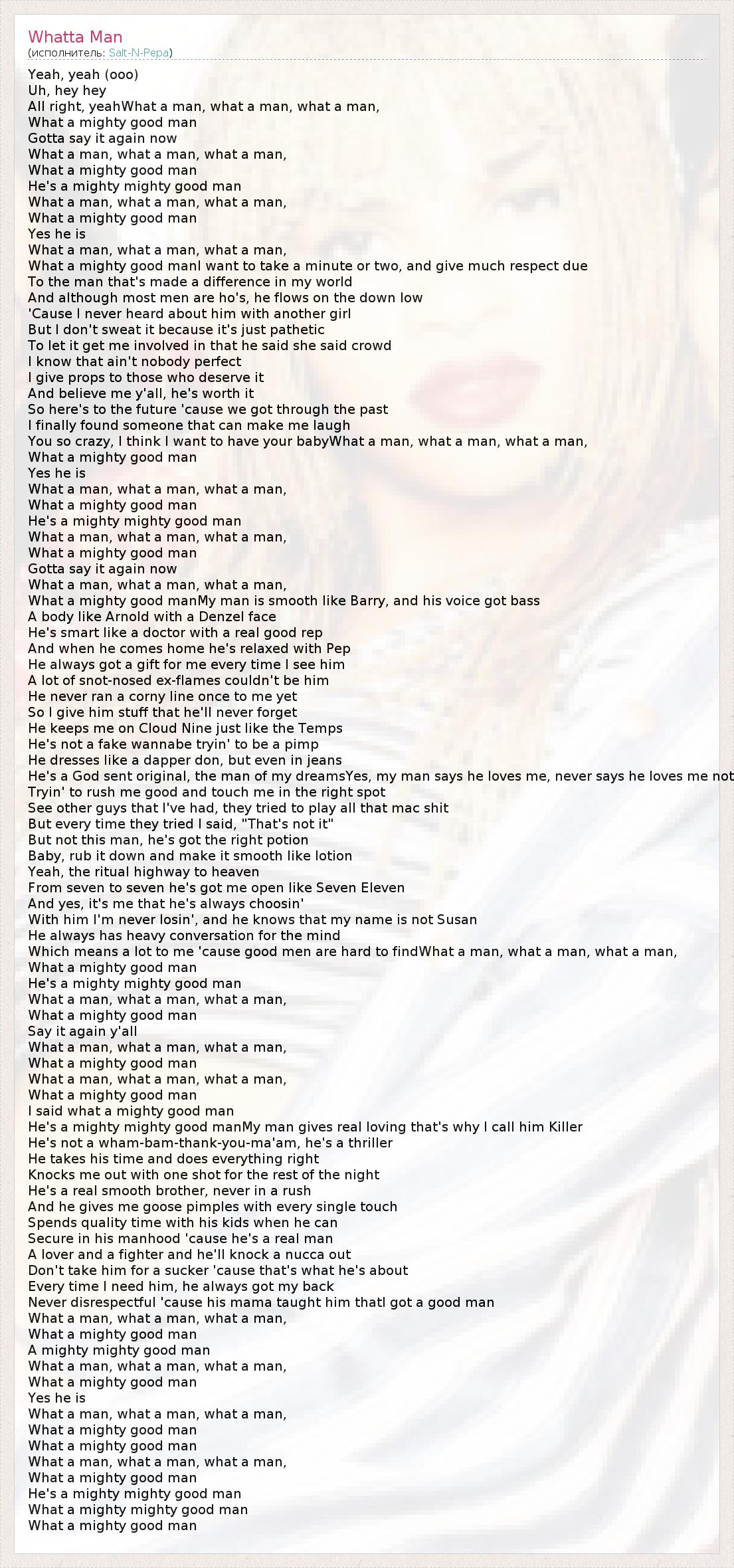 А как ты думаешь, о чем песня "Whatta Man" ?