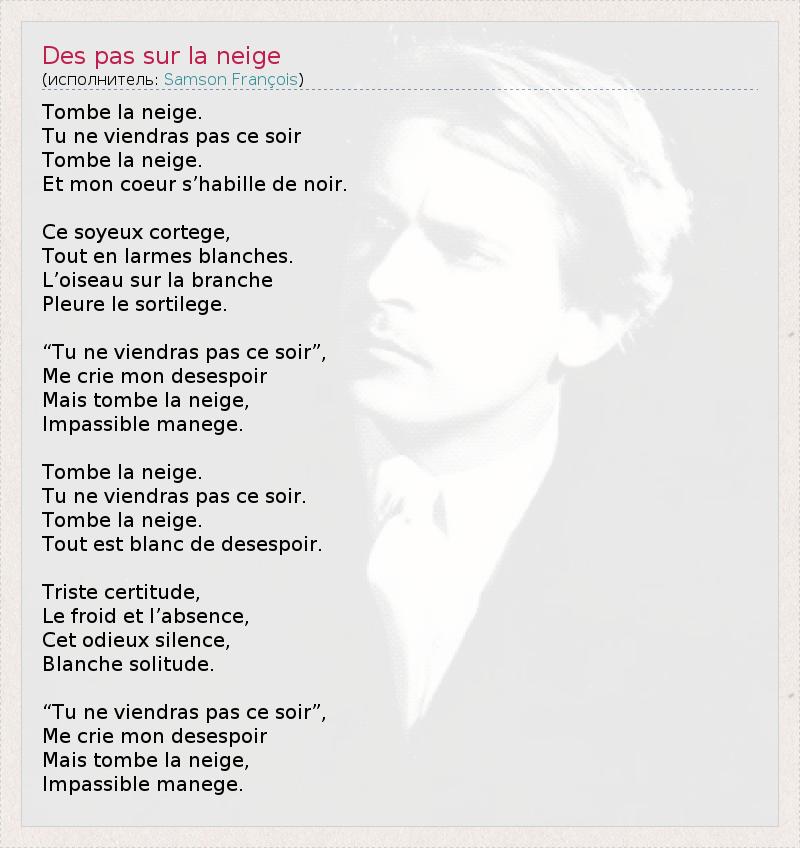 А как ты думаешь, о чем песня "Des pas sur la neige" ?