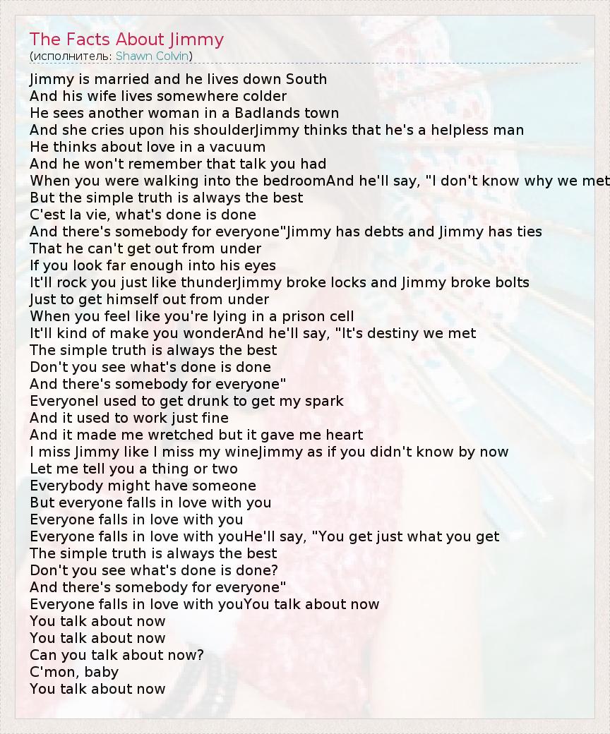 А как ты думаешь, о чем песня "The Facts About Jimmy" ?
