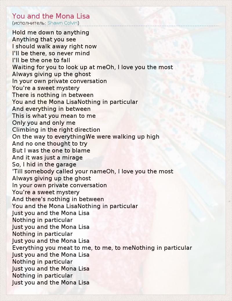 А как ты думаешь, о чем песня "You and the Mona Lisa" ?