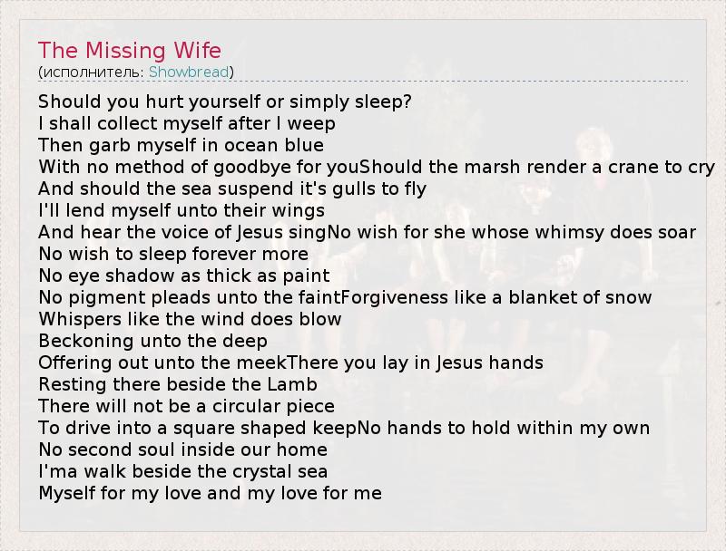 А как ты думаешь, о чем песня "The Missing Wife" ?