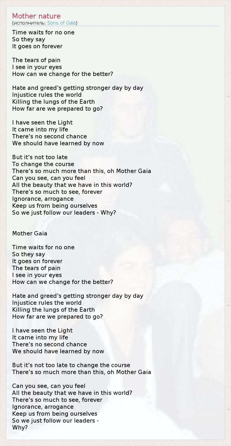 А как ты думаешь, о чем песня "Mother nature" ?