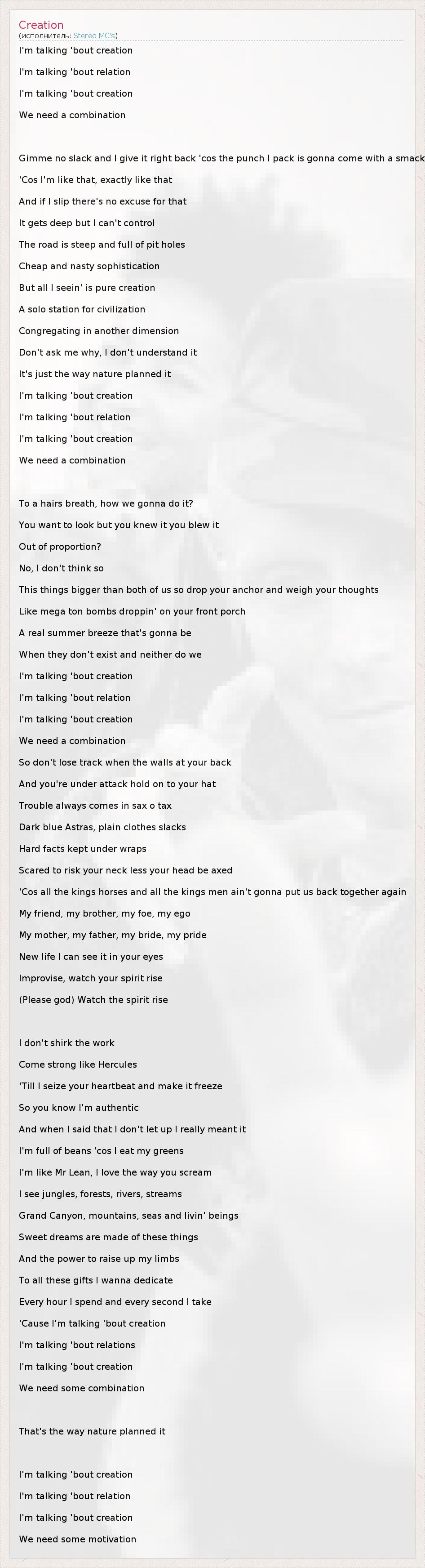 Это интересно:Патриархи британского хип-хопа Stereo MC's, отмечающие в 2005 году двадцатилетний юбилей, испытали на прочность череду самых разных стилей. Они делали электронную музыку, хаус, эйсид-джаз, танцевальные композиции, трип-хоп и рэп. Редкие группы способны переварить такое разнообразное меню. В карьере Stereo MC's были периоды более или менее успешные, был период почти полного затишья: на восемь... продолжение