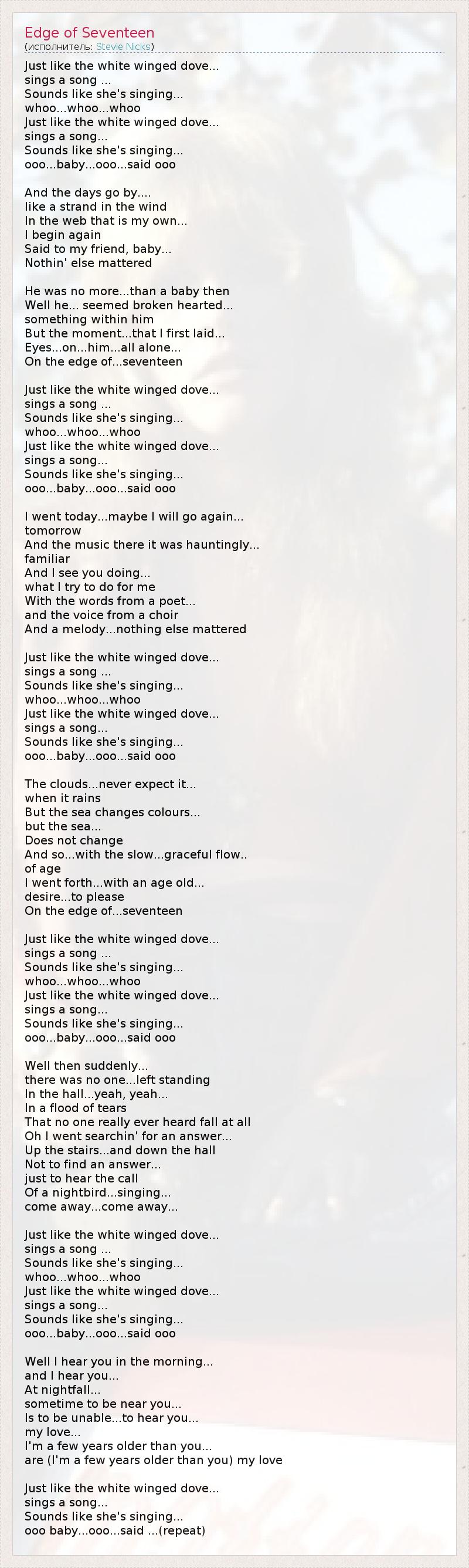 А как ты думаешь, о чем песня "Edge of Seventeen" ?